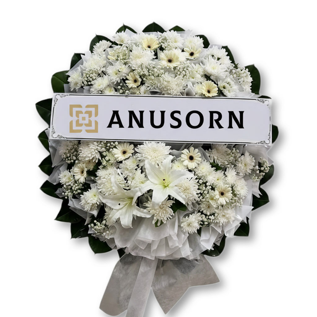 เมื่อคำพูดไม่อาจบรรยายความรู้สึกถึงการจากไปได้ทั้งหมด ให้พวงหรีดดอกไม้สดจาก Anusorn เป็นตัวแทนความรัก ความเคารพ และความเศร้าโศกอย่างสุดซึ้งที่คุณมีต่อผู้วายชนม์