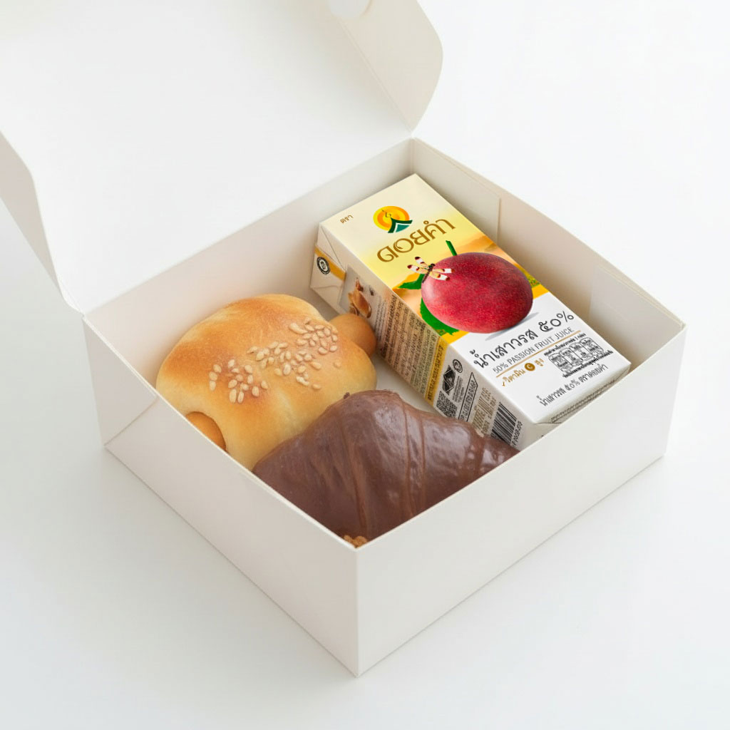 เราตั้งใจเลือกสรรของว่างคุณภาพดี 2 ชิ้น และน้ำผลไม้ 1 กล่อง เพื่อให้ได้ชุดของว่างที่ลงตัวที่สุด พร้อมมอบทั้งความอร่อย ความสดชื่น และความประทับใจไม่รู้ลืมให้กับแขกคนสำคัญของคุณ