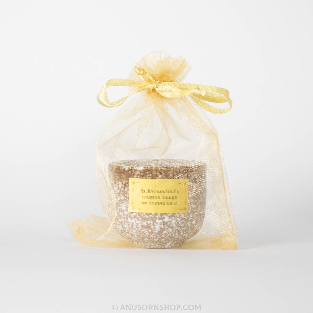 ของชำร่วยงานศพ ถ้วยเซรามิก สีดำ (เล็ก) พร้อมถุงผ้าและสติกเกอร์