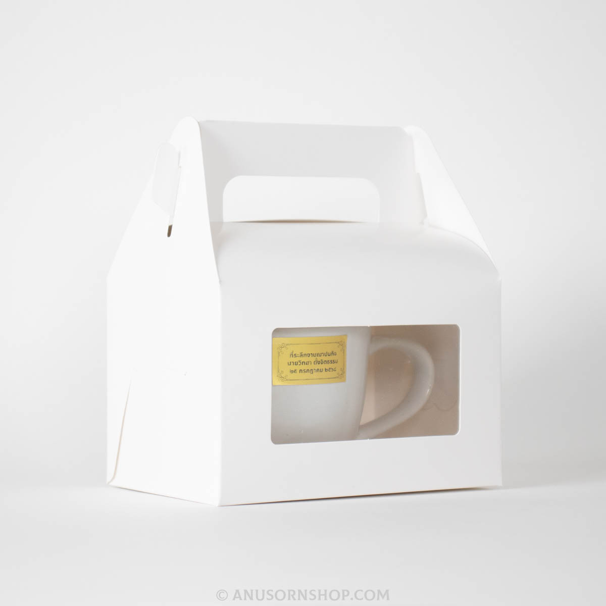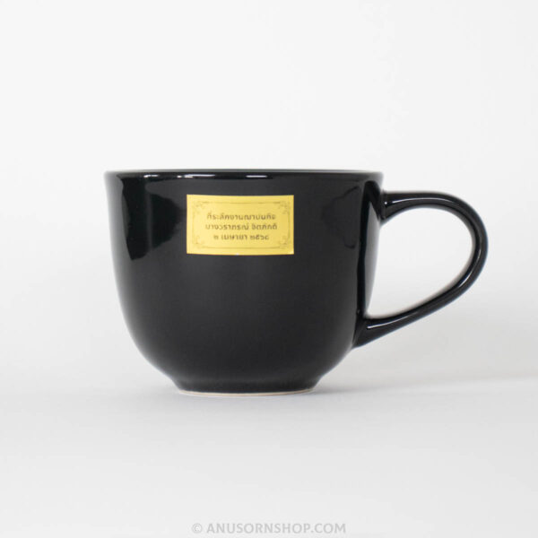 ของชำร่วยงานศพ แก้วกาแฟเซรามิก สีดำ พร้อมกล่องบรรจุมีหูหิ้วและสติกเกอร์