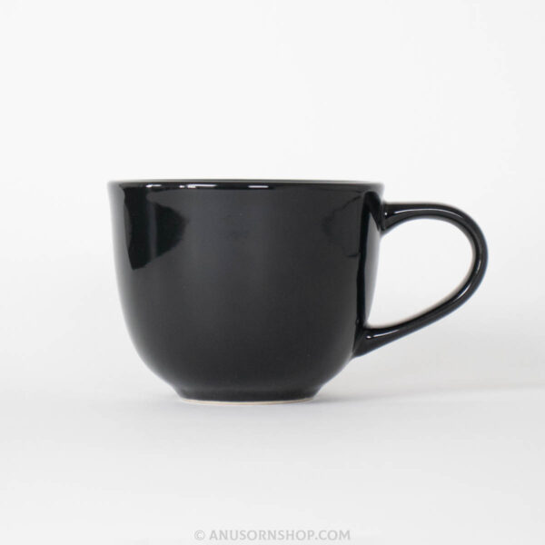 - ตัวสินค้า: แก้วเซรามิกสีดำล้วน (ขนาดปากกว้าง 8 ซม. สูง 6 ซม.) รูปทรงโค้งมน จับถนัดมือ