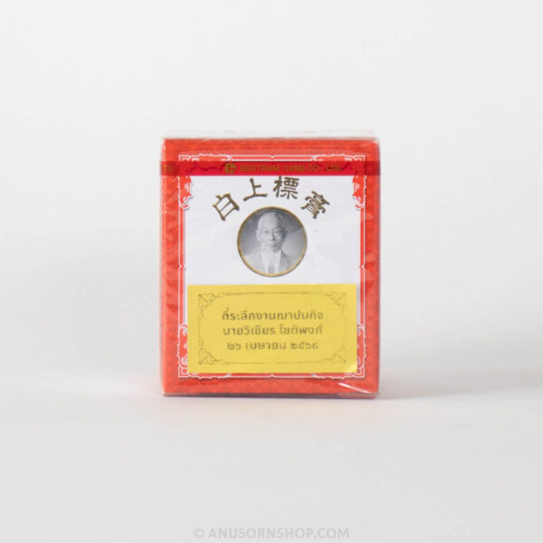 สินค้าในชุดประกอบด้วย: ยาหม่องขาว ตราเซียงเพียว 12 กร้ม และสติกเกอร์ระบุชื่อผู้ล่วงลับและวันจัดงาน